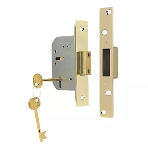 Deadlock. 2 keys. Supplied with fixings. Brass finish.