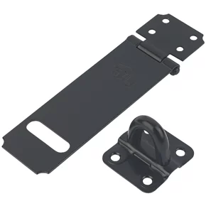Weather-resistant, medium duty steel hasp and staple. Supplied with fixings.