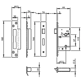 5-lever mortice sashlock suitable for use on 30 and 60-minute fire doors. Supplied with 3 keys and fixings.